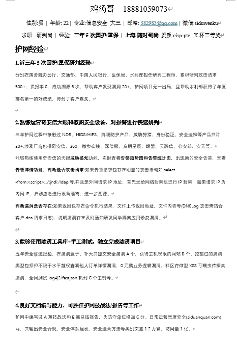 政治面貌、英语等级、专业资质(如CISSP/CISP/CCSP/NISP)