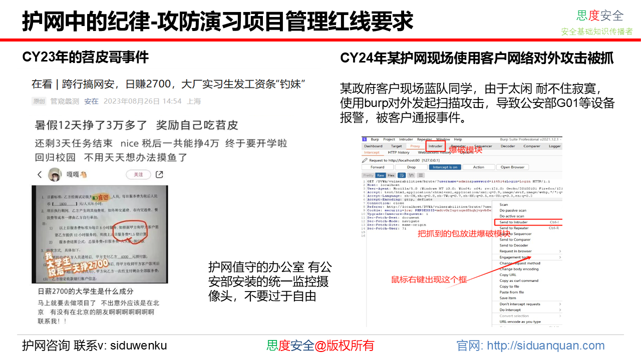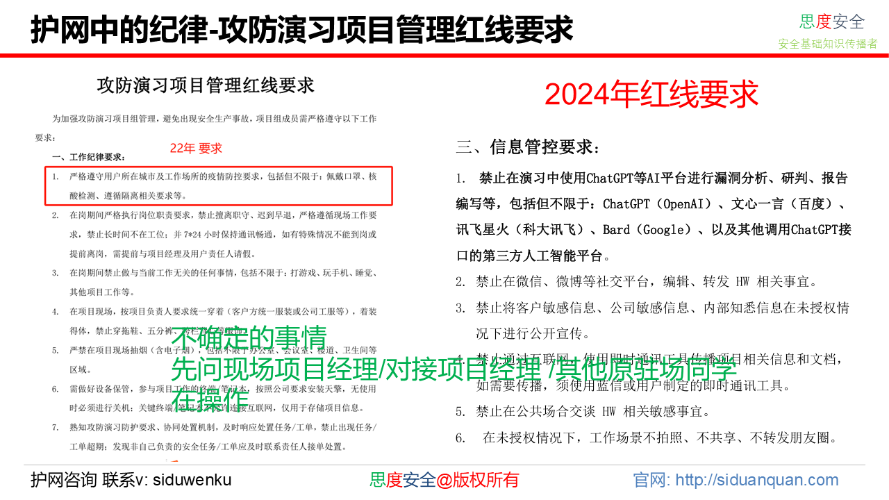护网是一次正规的安全项目,会签署合同和保密协议,有严格的项目纪律,护网新人一定要了解,一旦违反保密协议或出现其他违规情况,可能是无法拿到钱