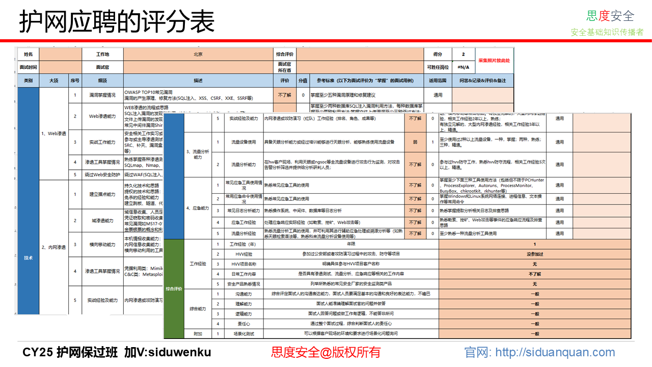正式的面试,面试官都是有一份评分表,有专业技能和软技能两大部分